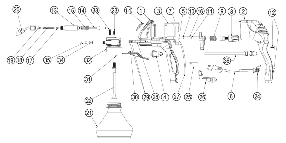 If the spray gun is out of order, please detach and examine it according to the instruction menu attached. If the reason is oxidization, please remove it by using deoxidization paste, then drop little nourish oil on it. If the reason is damage of parts, we can supply all parts at reasonable price. Please indicate us the part No., we assure you of our best service at all times. |
